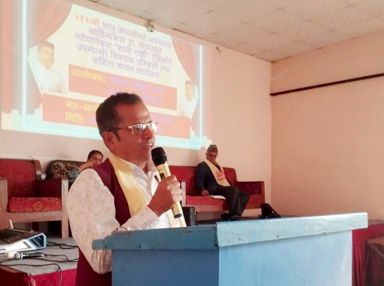 आज महिला साहित्य तथा अनुसन्धान प्रतिष्ठानकाे आयोजना र न्युमिलिनियम कलेजकाे सहआयाेजनामा २१२ औं भानुजयन्तीकाे उपलक्ष्यमा बालसाहित्यकार डा.छायादत्त न्यौपानेकृत हामी गर्छौं किशोर उपन्यासकाे विमर्श तथा कविता वाचन कार्यक्रम सम्पन्न भयो । न्युमिलिनियम क्याम्पसका प्राचार्य रुद्र पन्तकाे अध्यक्षता र प्राज्ञ बाबा वस्नेतकाे प्रमुख आतिथ्यमा सम्पन्न उक्त कार्यक्रममा डा. यादेवी ढकालले हामी गर्छौं शीर्षकको उपन्यास हाम्रा किशोरवयका पाठकका लागि उपयोगी सामग्री हाे । यसबाट युवाहरूलाई शिक्षक,अभिभावक र जनप्रतिनिधिहरूसित जाेडिएर कृषिजन्य उत्पादन गर्न सकिने सुन्दर विकल्प दिइएको छ । उहाँले स्रष्टालाई भाषिक सरलता, विषयवस्तुमा आख्यानीकरण जस्ता केही सीमा सम्पादन हुन सके राम्रो हुने सुझाव पनि दिनुभयाे । कृतिमाथि चर्चा गर्दै डा. शैलेन्दुप्रकाश नेपालले हामी गर्छौं कृति किशोर वयका पाठकका लागि पठनीय छ । यसले युवालाई उत्पादनमा लाग्न आग्रह गरेको छ । यसमा युवाले चाहेमा हाम्रो देशलाई कृषि कर्मबाट आत्मनिर्भर बनाउन सकिन्छ भन्दै बिदेसिने युवालाई स्वदेशमै रहेर स्वराेजगार बन्ने सकिने सम्भावना खाेजिएकाे छ । यस कृतिको घटनावस्तुकाे छरितो प्रस्तुति र संवादात्मक शैली राम्रो छ तर भाषिक जटिलता, छिटो छिटो आएका घटना विवरणले स्वाभाविक बन्न नसकेको देखिन्छ ।प्रकाशन अघि विमर्शमा ल्याउन पाएकाे भए भनेर स्रष्टालाई यसतर्फ ध्यान दिन सल्लाह दिनुभयो ।