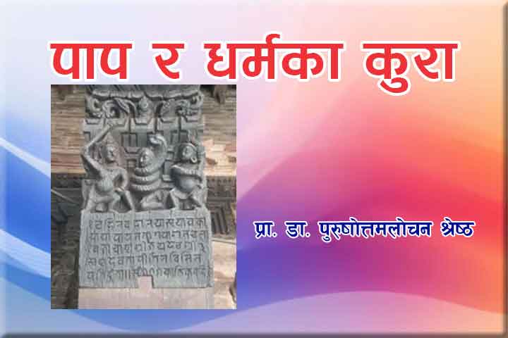 कुकर्म पाप हो, अन्याय हो । सुकर्म धर्म हो, न्याय हो जसले पुण्य मिल्छ । पापले अहित हुन्छ । धर्म सत्य हो । सत्यले न्याय हुन्छ, सबैको हीत/कल्याण हुन्छ । सभ्यतासंगै पाप र पापलाई तह लाउन धर्म पनि पछि लागेर आयो । र यसरी सभ्यताको उषाकालदेखि आजसम्म पनि पाप र धर्मबीच अन्त्यहीन द्वन्द्वयुद्ध चलिआएको छ । पापलाई नाश पार्न अनेक प्रकारका विधिविधान, ऐन, नियम लगायतका विधान, उपायहरूको प्रयोग गर्दै धर्मको शासन चलिआएको छ । राज्यव्यवस्था/शुशासन, शान्ति सुव्यवस्था, ऐन कानून, न्याय र दण्डव्यवस्था आदि ‘धर्म’ कै अनेक स्वरूप वा अवतार हुन् । नैतिकता, धार्मिक भाव एवं मानवता कानूनभन्दा उपल्लो तहका कुरा हुन् जसको अद्भुत प्रयोगले, जसप्रतिको अगाढ आस्था र विश्वास एवं मान्यताले पनि पूर्वप्राचीनकालदेखि पापकर्म हतोत्साहित हुँदै आएको विदित हुन्छ । देशमा सदाकाल अमन चैन, शान्ति सुव्यवस्था कायम गरी धर्मको शासन चलाइराख्न इतिहासको कालप्रवाहमा वैदिक, पौराणिक साहित्य, धर्मशास्त्र, प्राचीन बौद्ध साहित्य लगायतका जातक कथा, हितोपदेश र नैतिक साहित्य आदिले ओतप्रोत, अनेक प्रकारका विधान, न्यायव्यवस्था दण्डव्यवस्था आदि लगायत स्वर्ग नरकको अवधारणा, आस्था र विश्वास पूर्वप्राचीनकालदेखि नै व्यवहारमा आइरहेको दृष्टिगोचर हुन्छ । लौकिक जीवनमा वा जीवित छँदा गरेको पापकर्म राज्यले बनाएको कानूनका सामु लुकाउन सकिएला तर सर्वव्यापी, सर्वद्रष्टा दैवीय शासन र कानूनका आँखामा कदापि लुक्न सक्दैन । त्यसोहुँदा मरेपछि स्वर्गवास हैन नरकवास भोग्नुपर्छ भन्ने प्रबल जनविश्वास रहिआएको छ । यी कुरालाई पुष्टि मिल्ने बौद्ध र हिन्दू विषयका दुई अनुपम प्रमाणहरू, चतुवर्ण महाविहार र हरिशङ्करमन्दिरका ती टुँडालहरू हुन् जसमा उत्कीर्ण जीवन्त लाग्ने दण्डसजायका आकृतिहरूले नागरिक समाजमा यमपुरी, नरकवास, र यमदूतहरूद्वारा दिइने अकल्पनीय दण्डसजायलाई दृश्यात्मक रूपमा स्मरण गराई त्यताबाट उत्पन्न हुने धार्मिक–मानसिक भयले अपराधविहीन, पापविहीन आदर्श नागरिक समाज सदाकाल गतिशील भइरहोस् भन्ने सन्देश प्रवाहित गरिरहेको कुरा निश्चितप्राय: प्रतीत हुन्छ ।